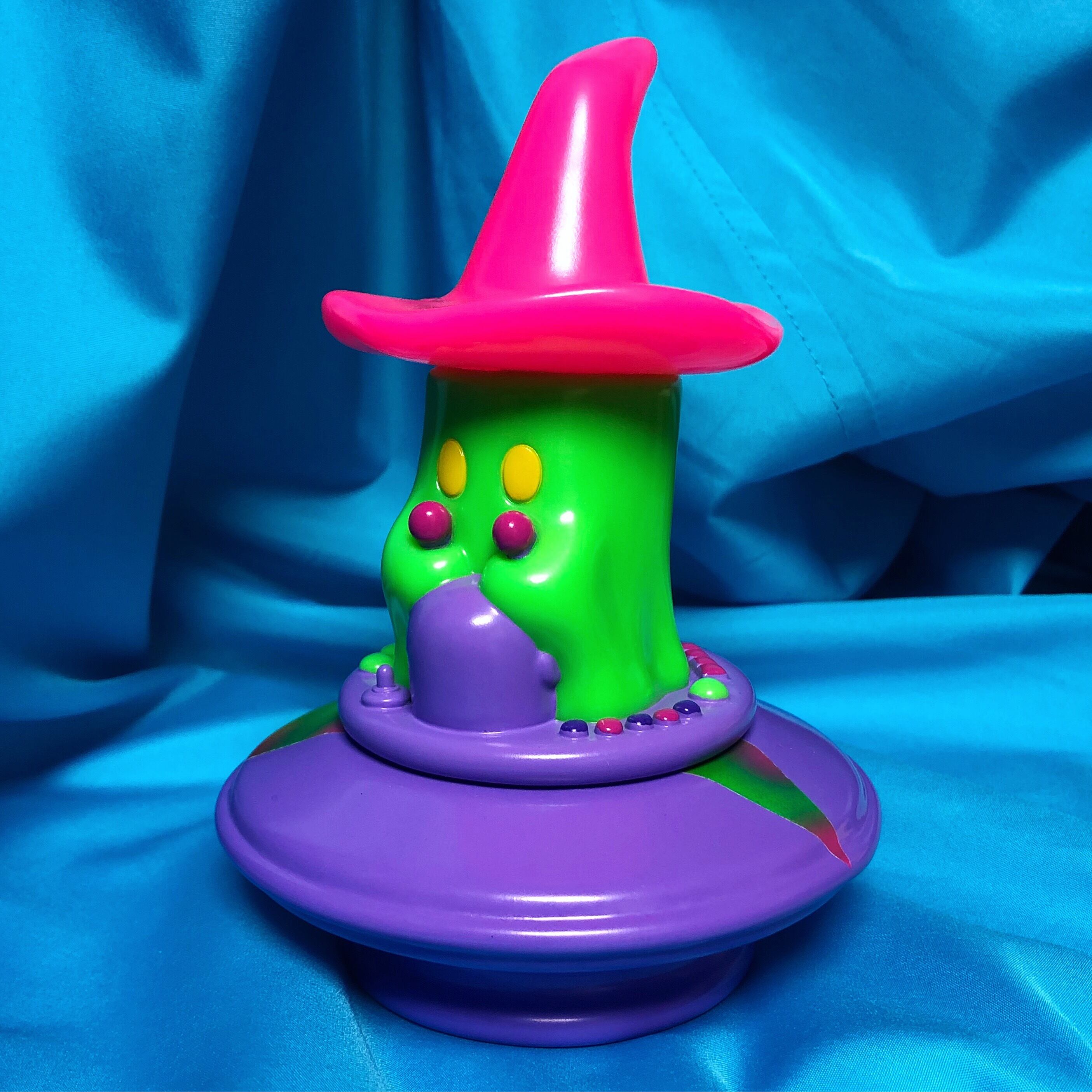 のソフビ人形です。UFOの底面には「憑」の文字が彫られています。